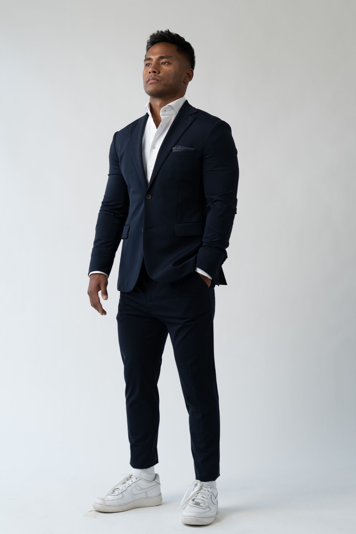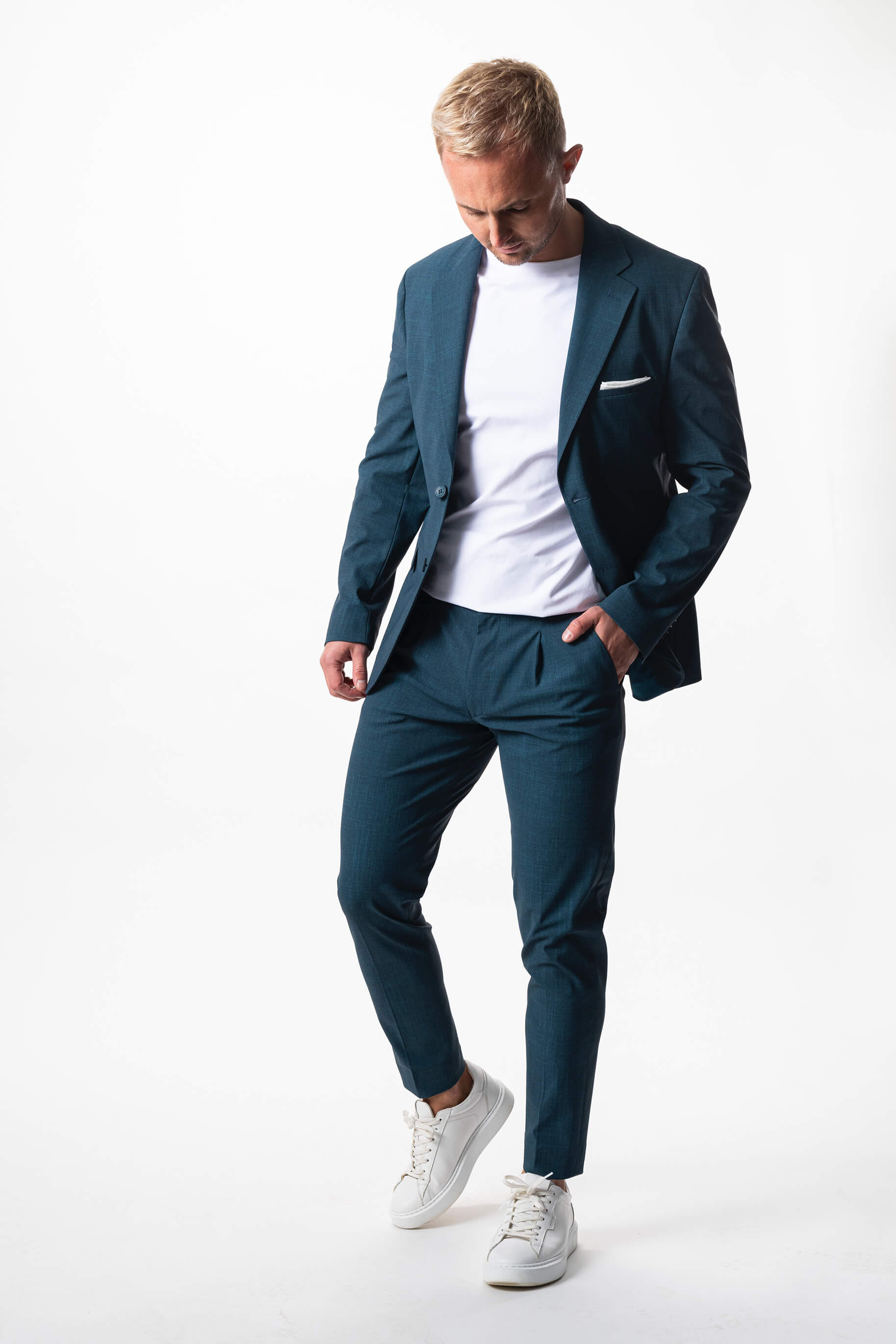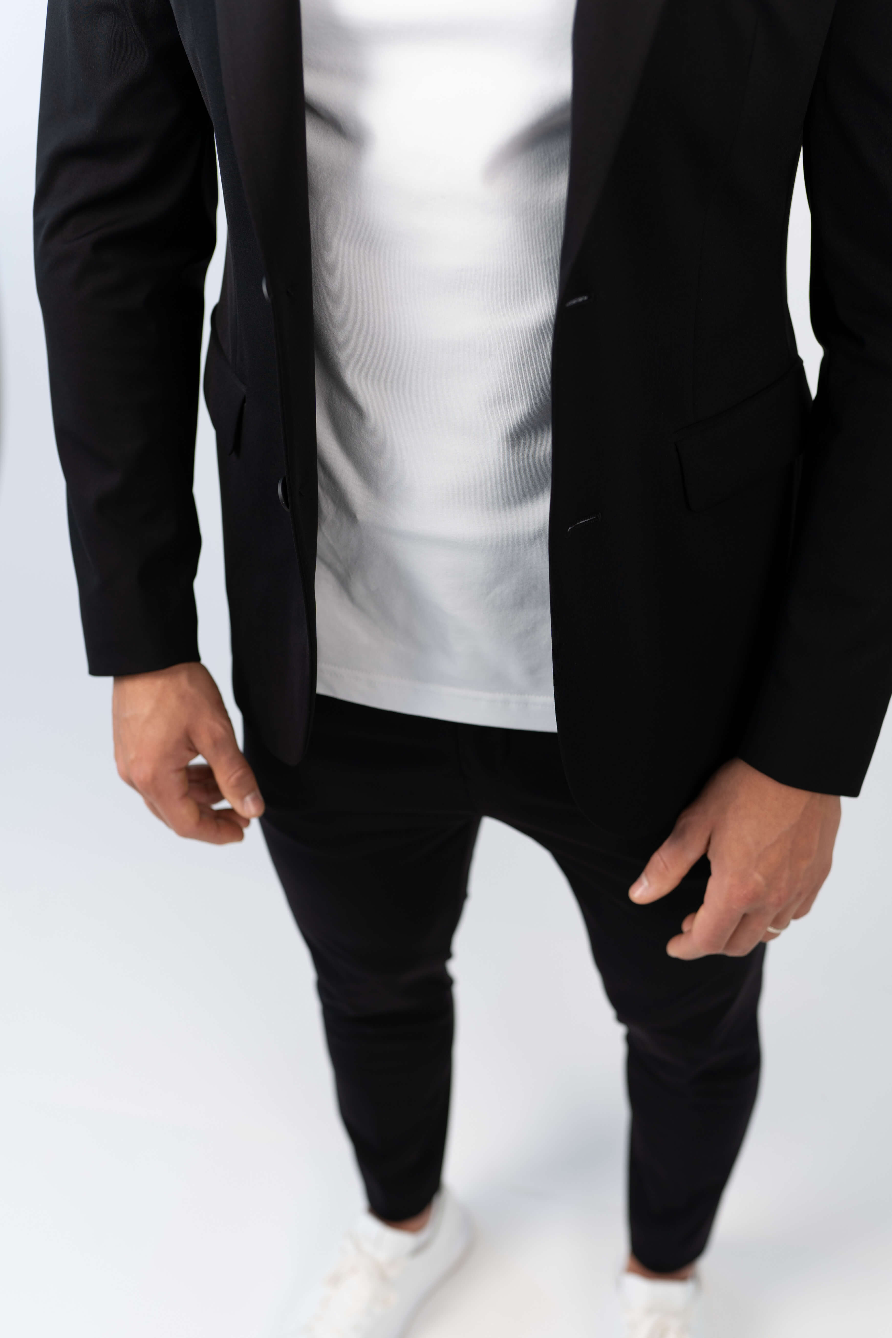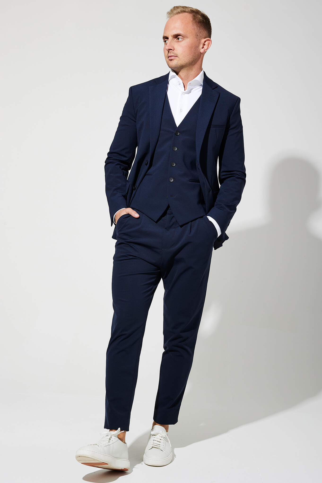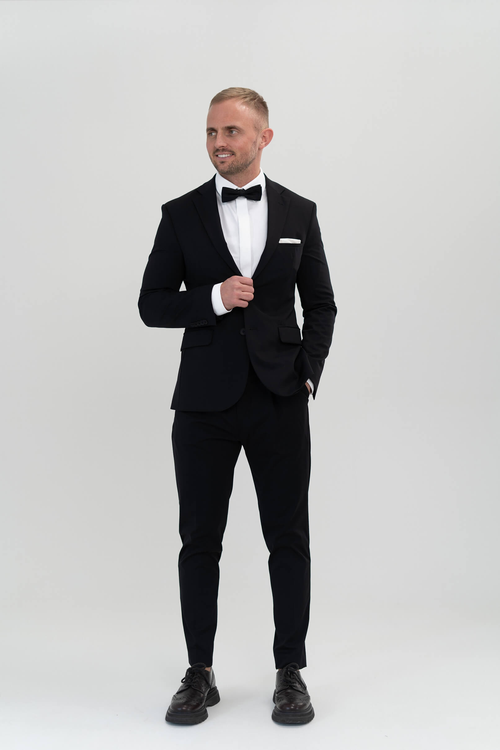 Our ready-to-wear suits are immediately available and start at €730 for a complete suit featuring modern style, excellent fit, and outstanding comfort. Made from breathable performance flex material, they are quick-drying, odor-neutral, and offer maximum freedom of movement.