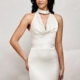 Das Brautkleid Cassidy aus luxuriösem Crepe formt dank trägerlosem Corsagen Oberteil und Basque-Taille eine elegante, figurbetonte Silhouette. Abnehmbare Drapierungen ermöglichen einen wandelbaren Brautlook von modern-minimalistisch bis romantisch.