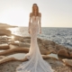 Das Brautkleid Cher vereint romantische Eleganz mit zeitloser Raffinesse: In einer verführerischen Meerjungfrauen-Silhouette umschmeichelt es die Figur, während zarte Spitze, Perlendetails am Corsage-Oberteil und eine elegante Kapellen-Schleppe für einen luxuriösen, lichtdurchfluteten Look sorgen.