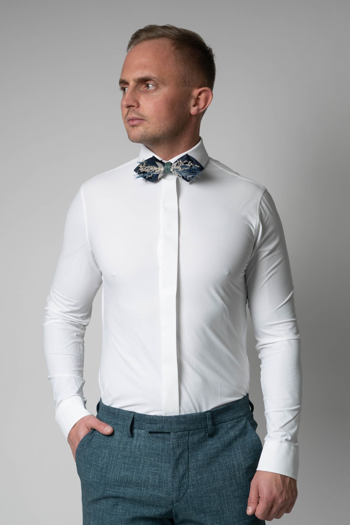 Elegantes Langarm-Hemd Ivory mit verdeckter Knopfleiste – moderner Slim Fit, bequem und körperbetont, normale Länge für in oder über der Hose, atmungsaktiv, formstabil und knitterfrei – perfekt zum Smoking an Ihrem besonderen Tag.