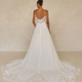 Whyte vereint klare Linien mit romantischen Nuancen. Das charakteristische Spitzenoberteil hat eine zart geformte, baskische Taille. Ein zeitloses Kleid mit modernem Flair aus Chantilly-Spitze mit Pailletten, matter Stickerei und luftigem Chiffon. Mit Spitzen-Illusionsschleppe.